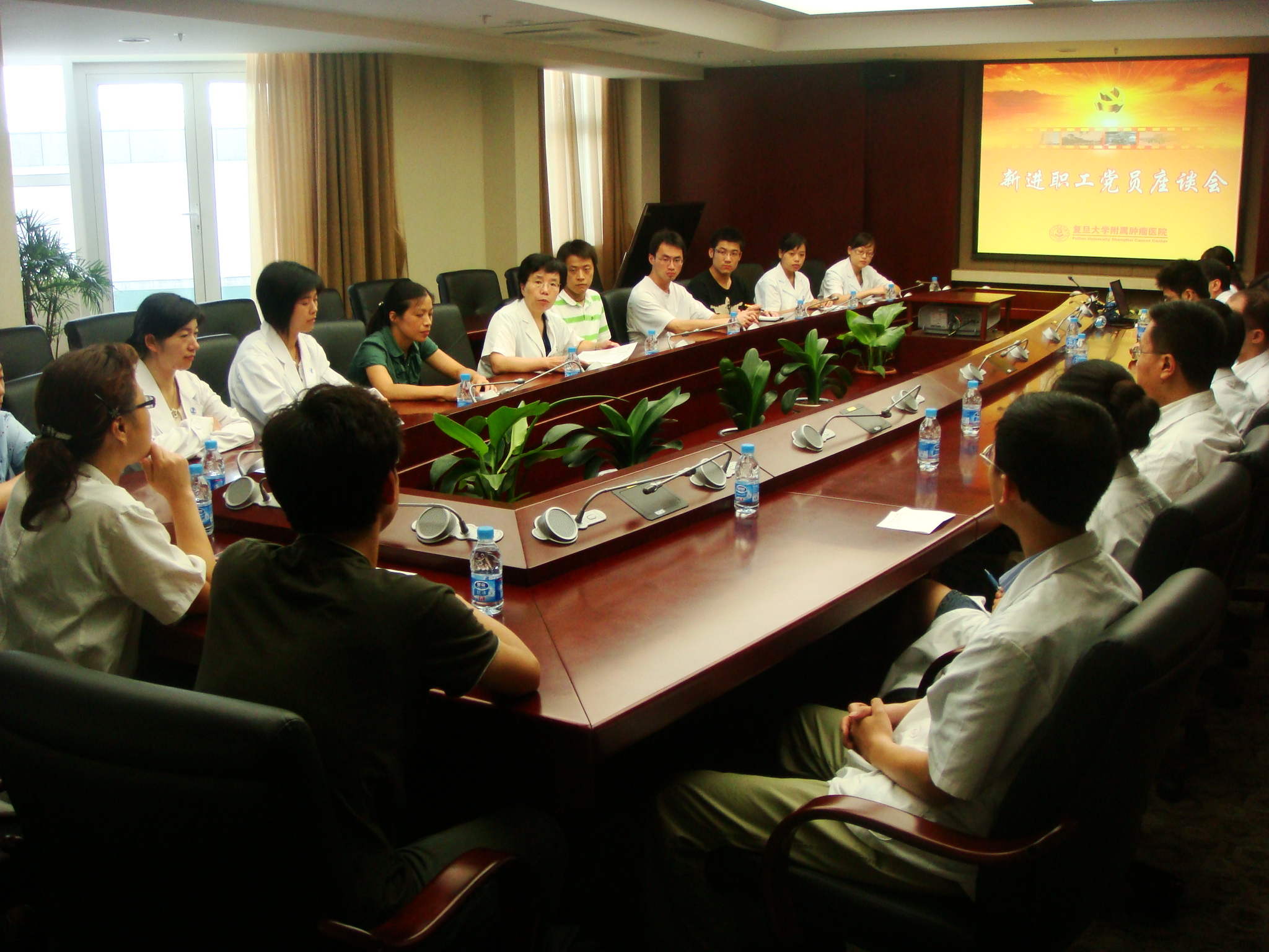 8月5日下午,院党委召开新进职工党员大会,医院党委书记孙斌教授、党委办公室顾文英主任,以及09年肿瘤医新录用的职工党员二十多人参加了座谈会。