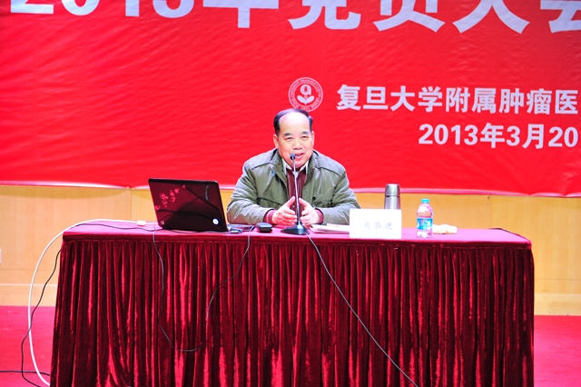 报告之后院长郭小毛、党委书记李端树分别代表院部和党委作了2012年工作总结及2013年工作计划报告。报告中,郭小毛院长首先回顾了2012年我院医教研工作情况,在肯定门急诊量、总住院数、总手术数都较去年有显著增加的成绩的同时,也指出在接下来的工作中,各科室要清晰定位自身,找到追赶的标杆,努力缩小与同行间的差距。李端树书记在报告中指出,2012年医院在党建、精神文明和文化建设上也取得了一定成绩,但是在满意度考核及个别党员发挥先锋模范作用等方面还有待加强;他同时结合时政,向在座的党员传达了上级党委在反腐倡廉等工作中的要求,并号召广大党员在工作中进一步发挥一线党员的先锋模范作用,不断提升员工和病人满意度,开拓进取,以实际行动贯彻党的十八大精神,为创建亚洲一流肿瘤防治中心而努力奋斗。