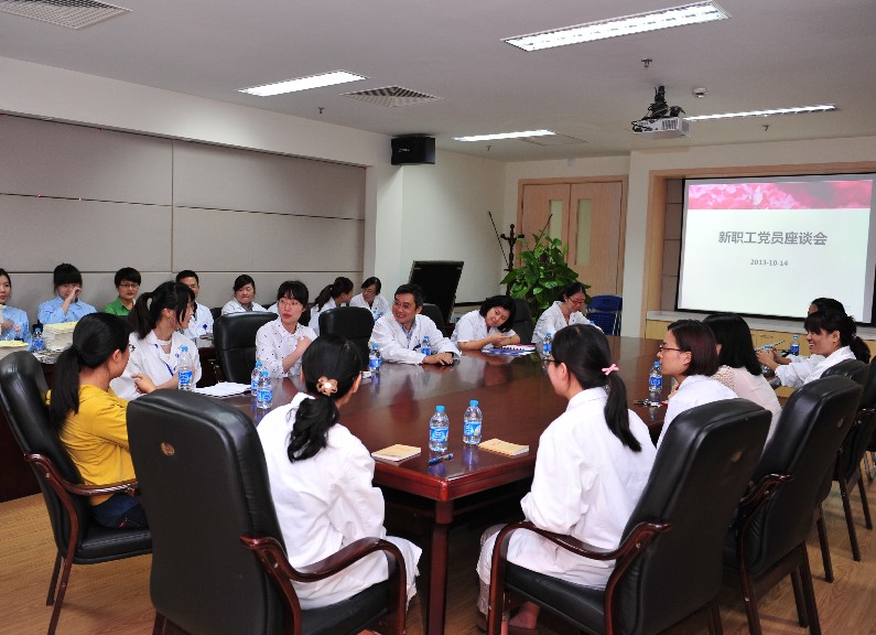 2013年10月14日下午,为促进新职工党员了解医院,熟悉彼此,迅速融入新的工作环境,党办召开新职工党员座谈会,来自临床、职能各部门的新职工党员参加了此次会议。