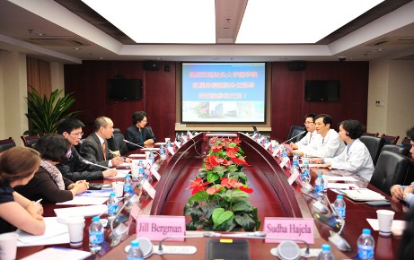 2013年10月16日,汕头大学医学院附属肿瘤医院邱卫黎副院长带领相关职能部门主任以及Aditazz公司的外宾一行10人莅临我院进行参观交流活动。我院陈震副院长及部分职能部门主任出席接待。