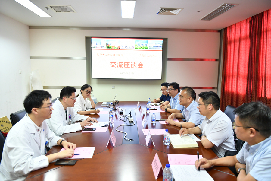 会上,吴限书记、戴斌院长介绍滨海县人民医院是一所三级综合医院,当地人口基数较大,群众对肿瘤防治的需求日益强烈。今年5月双方签署医联体合作协议后,已经对接开展肿瘤内科、放射治疗中心等人员进修,期待通过双方更为深入的合作提升盐城滨海的肿瘤防治水平,为百姓带来福音。吴炅常务副院长对滨海县人民医院加入我院医联体“大家庭”表示热烈欢迎,并指出滨海医院的骨干来我院进修轮训,能够有效帮助医生建立肿瘤多学科综合治疗的理念。希望滨海医院能够上接复旦肿瘤,下接当地乡镇卫生院,合力打造集肿瘤“防筛诊治康”为一体的全流程健康管理体系,共同为长三角乃至全国肿瘤患者的健康事业添砖加瓦!