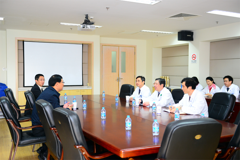 郭小毛院长对莫负春书记等一行的到访表示欢迎和感谢。交流中,郭院长向莫负春书记汇报了我院的发展和建设情况,他表示区域共建离不开政府和区域单位的协作,我院将一如既往的开展癌症社区筛查项目,并将结合我院乳腺肿瘤、大肠肿瘤、肺癌等优势学科开展特色服务项目,他希望区政府能够继续加强对肿瘤医院的关注和扶持力度。