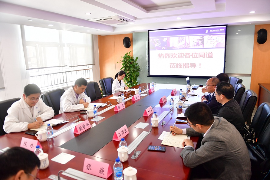 陈震副院长代表医院对南昌大学医学部同行的来访表示热烈欢迎,并介绍了医院总体情况、科研管理,多学科综合治疗以及学科建设等方面的内容。介绍结束后,双方就基础科学研究、临床诊疗技术、科研管理、学科建设、人才培养、 等进行了交流沟通。最后,代表团还参观了我院组织库和肿瘤研究所。