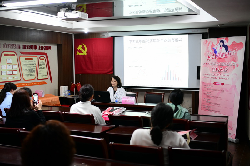 活动现场,肿瘤医院乳腺外科党支部书记、副主任柳光宇教授向居民们分享了当前上海的癌情现状,并强调癌症是一种可防可治疾病,通过早预防、早发现、早诊断、早治疗的“组合拳”完全可以降低癌症的发病风险,即便罹患癌症也可以获得良好的治疗效果。在肿瘤医院,早期乳腺癌的5年生存率可达到98%以上。