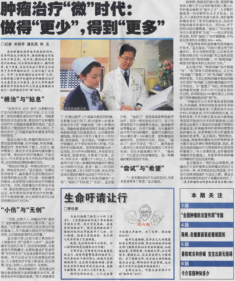 肿瘤防治宣传周系列报道——【大众卫生报】肿瘤治疗“微”时代:做得“更少”,得到“更多”