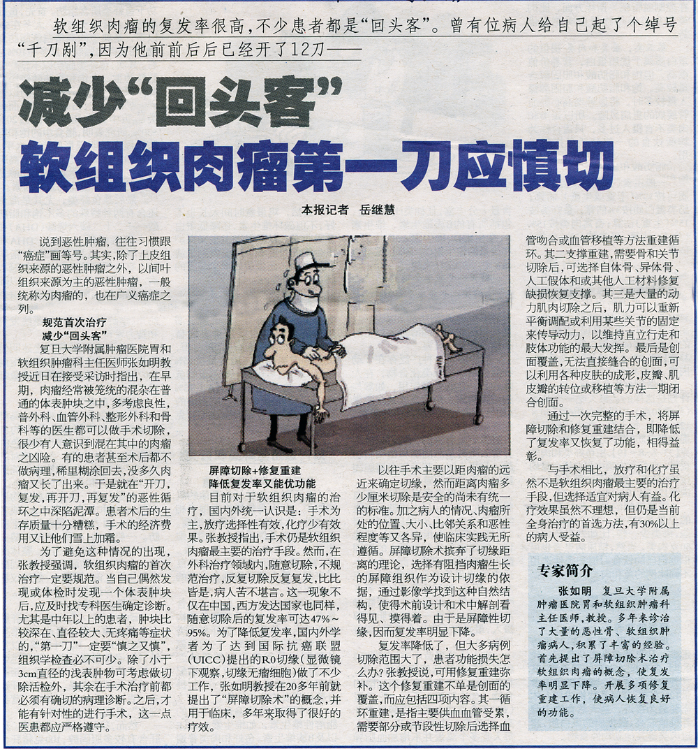 【健康财富】减少“回头客”,软组织肿瘤第一刀应慎切