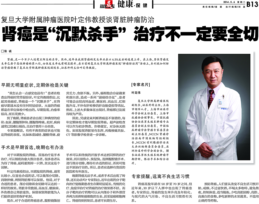 【新闻晨报】肾癌是“沉默杀手” 治疗不一定要全切