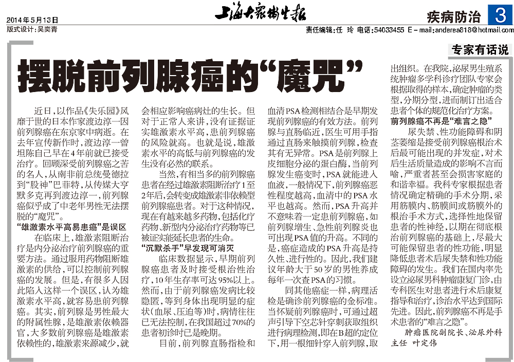【上海大众卫生报】摆脱前列腺癌的“魔咒”