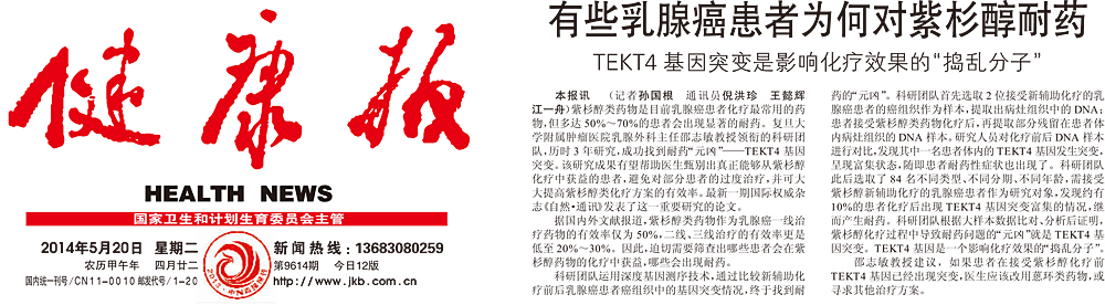 【健康报】有些乳腺癌患者为何对紫杉醇耐药