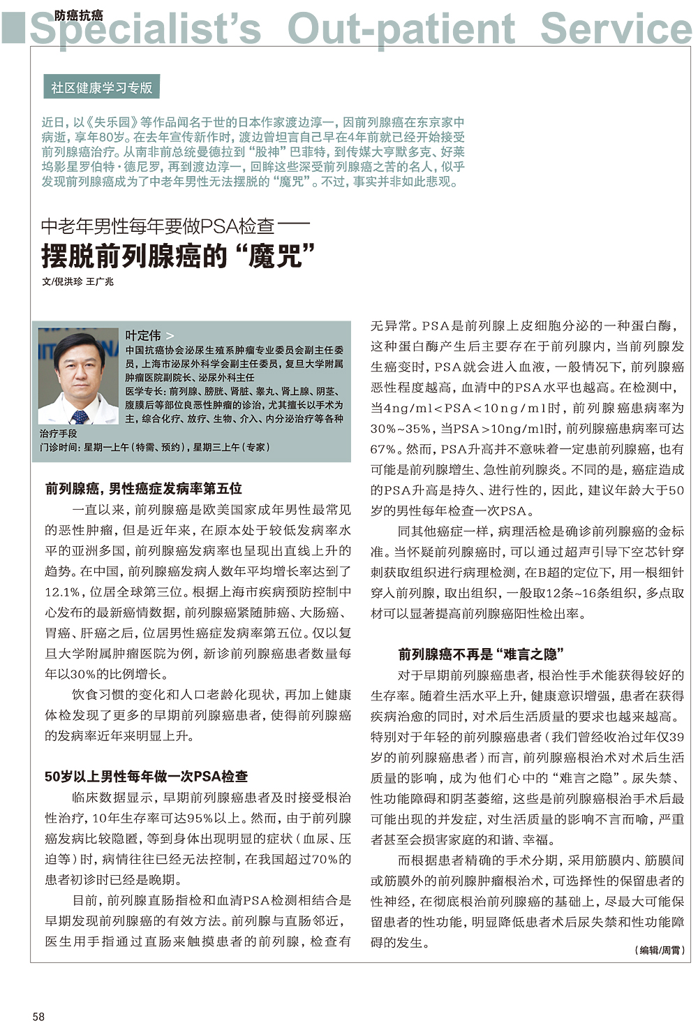 【康复】中老年男性每年要做PSA检查——摆脱前列腺癌的“魔咒”