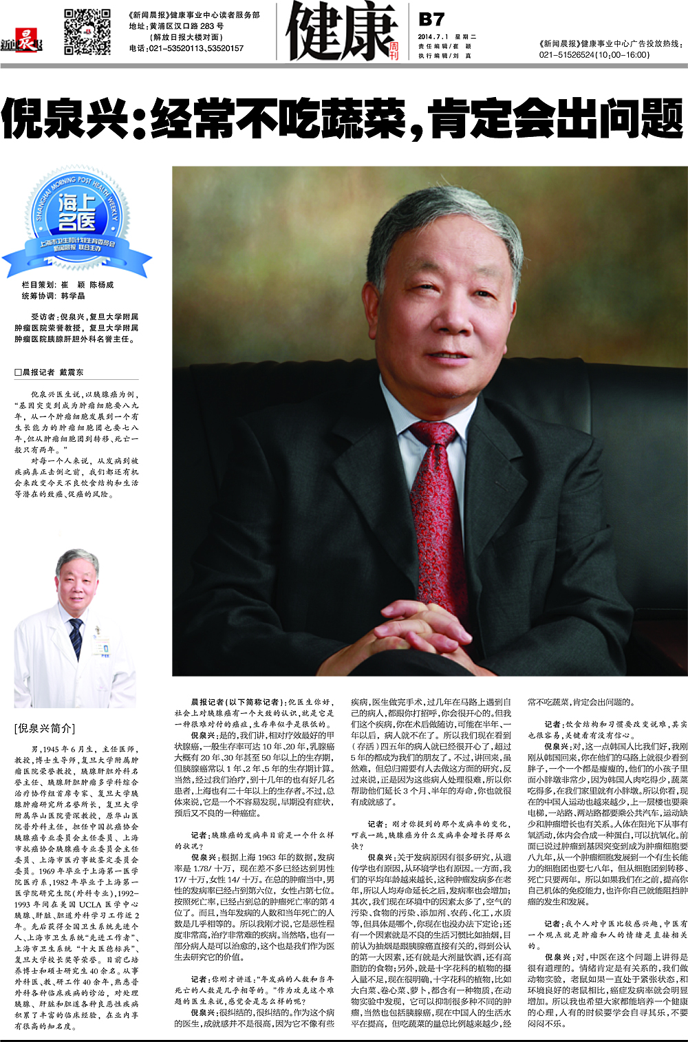 【新闻晨报】倪泉兴:经常不吃蔬菜 肯定会出问题