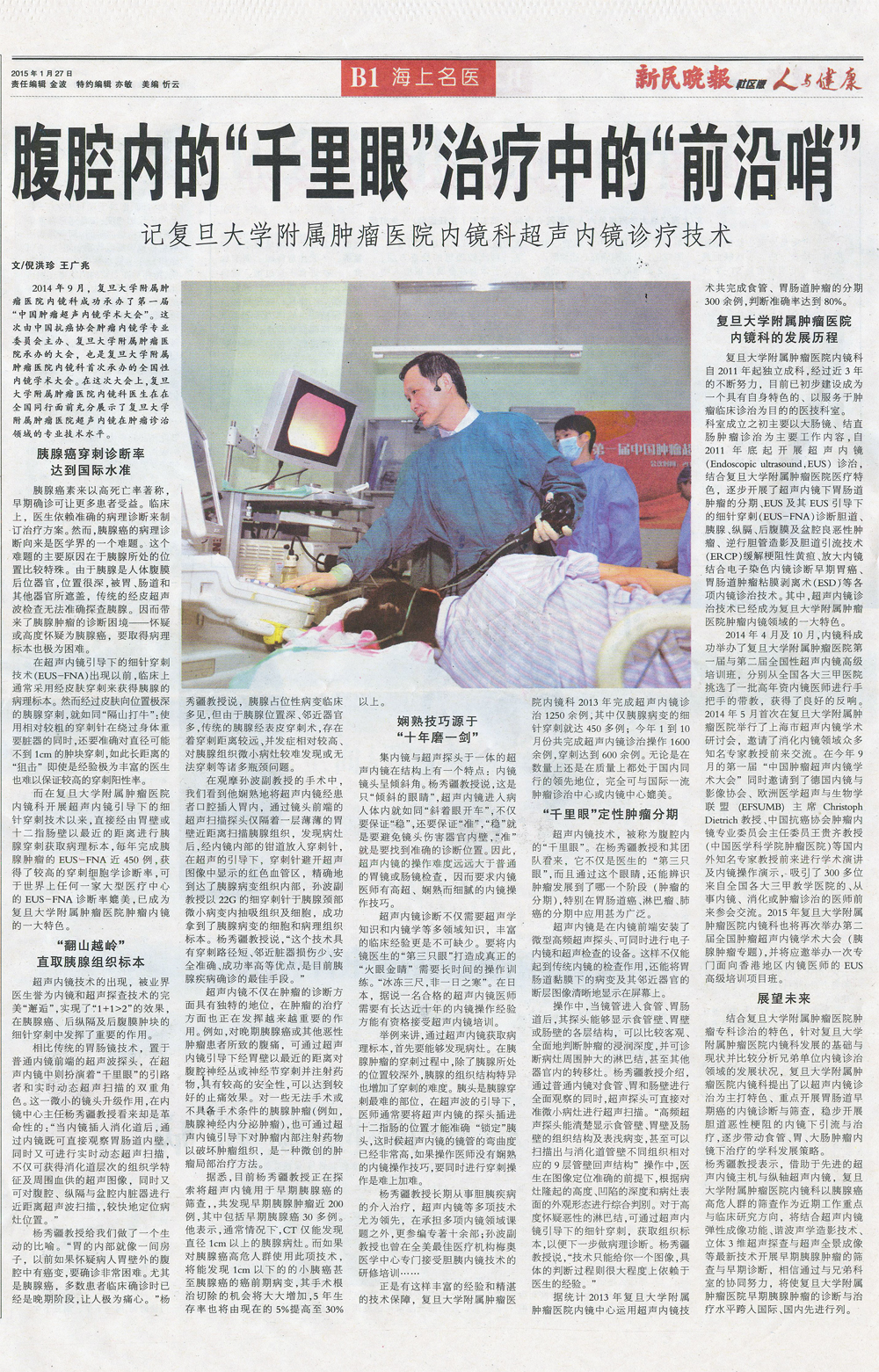 【人与健康】腹腔内的“千里眼” 治疗中的“前沿哨”——记复旦大学附属肿瘤医院内镜科超声内镜诊疗技术