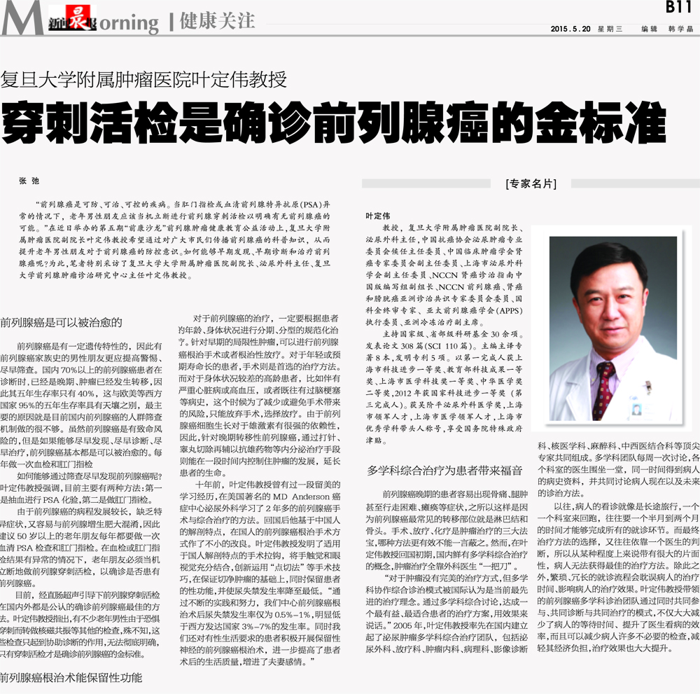 【新民晚报】穿刺活检是确诊前列腺癌的金标准