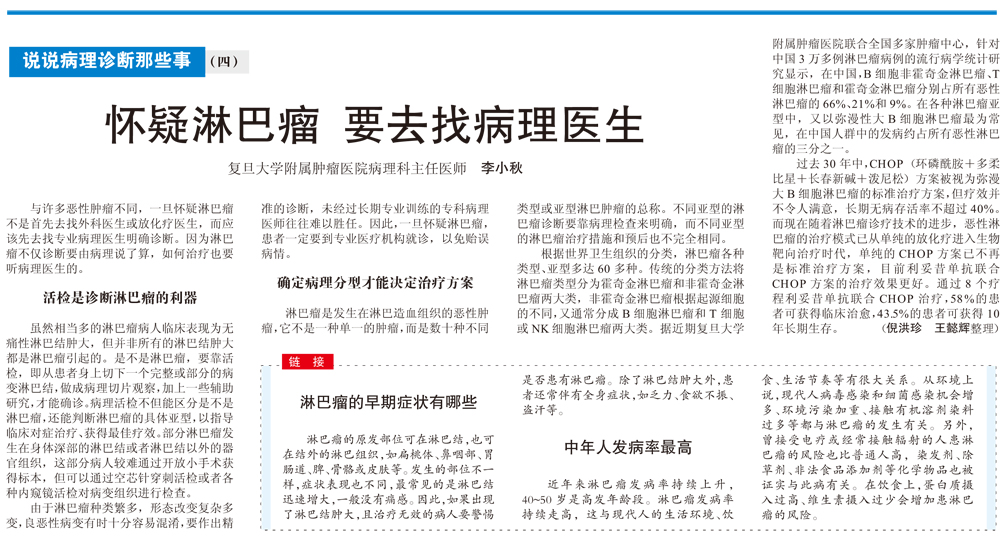 【健康报】怀疑淋巴瘤 要去找病理医生