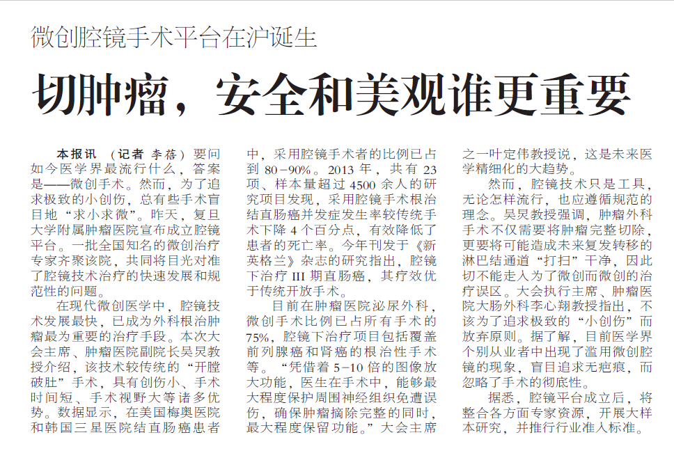 【劳动报】微创腔镜手术平台在沪诞生:切肿瘤,安全和美观谁更重要