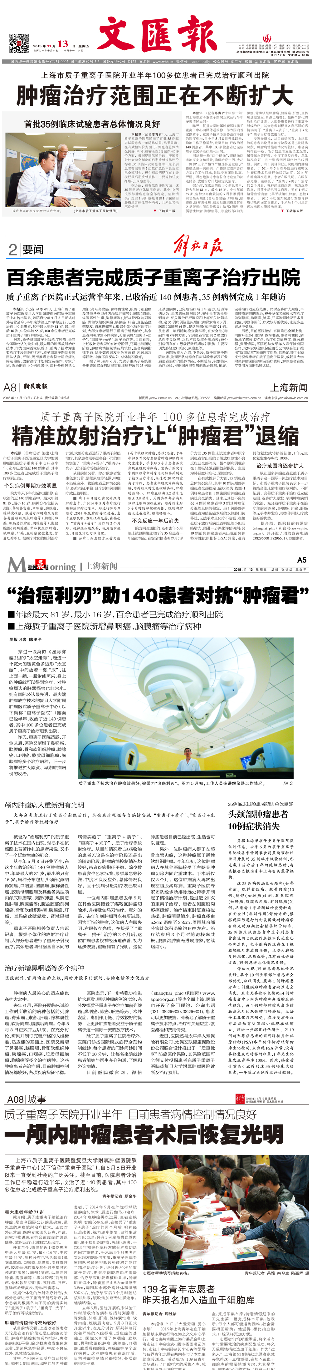 【文汇报】【解放日报】【新民晚报】【新闻晨报】【青年报】百余患者完成质子重离子治疗出院