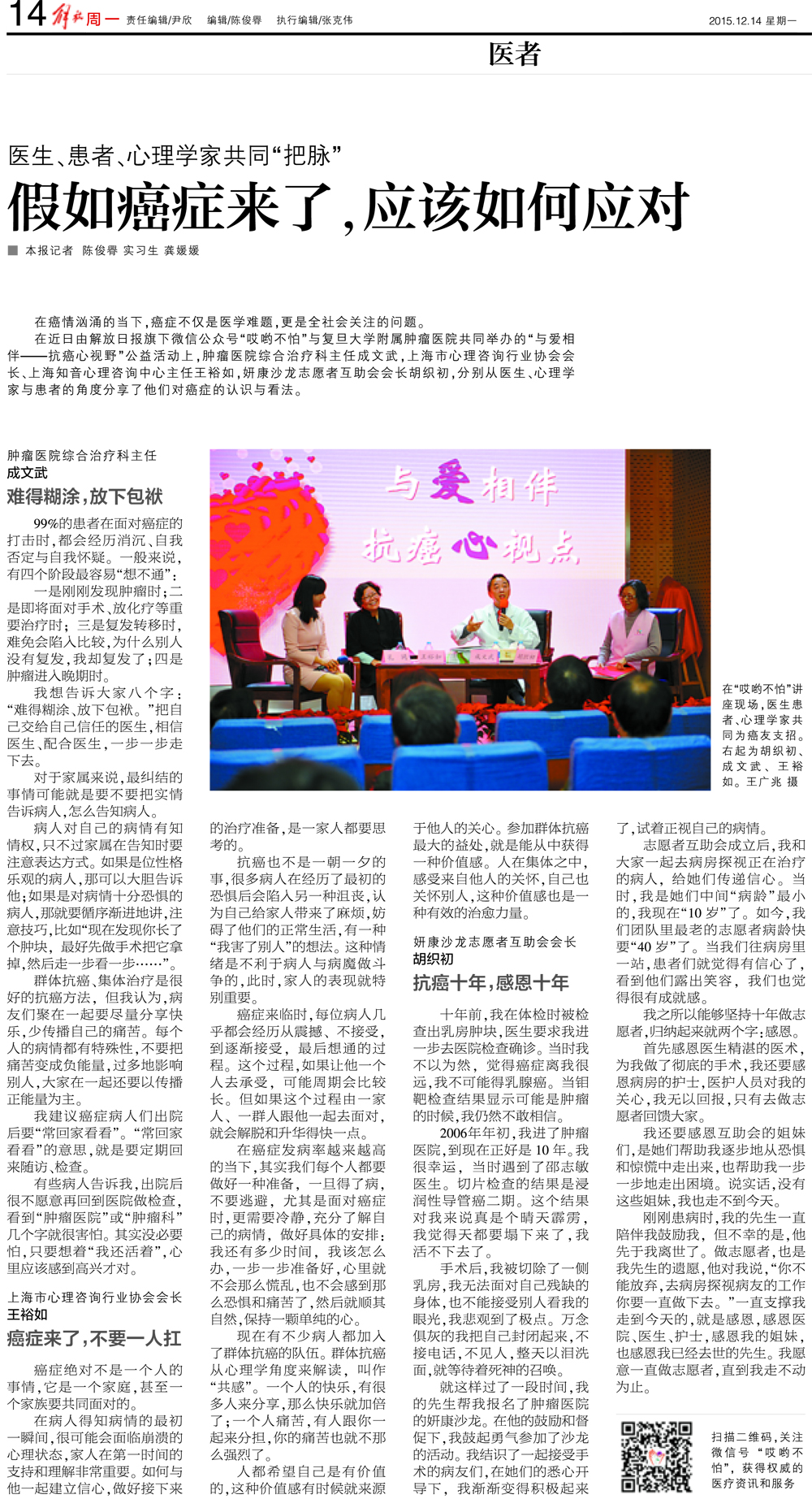 【复旦校报】附属肿瘤医院志愿者编写抗癌心理援助新书
