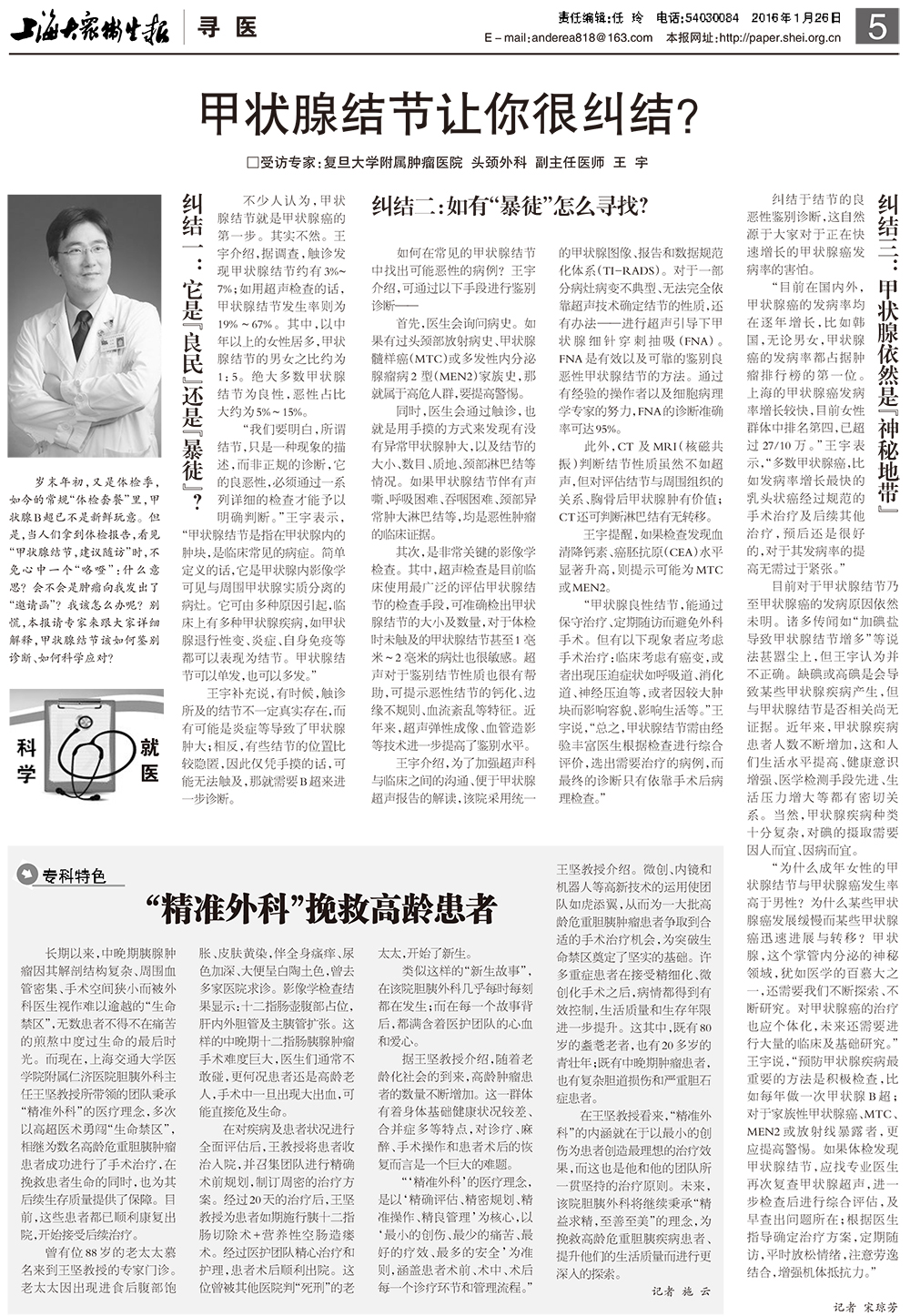 【上海大众卫生报】甲状腺结节让你很纠结?