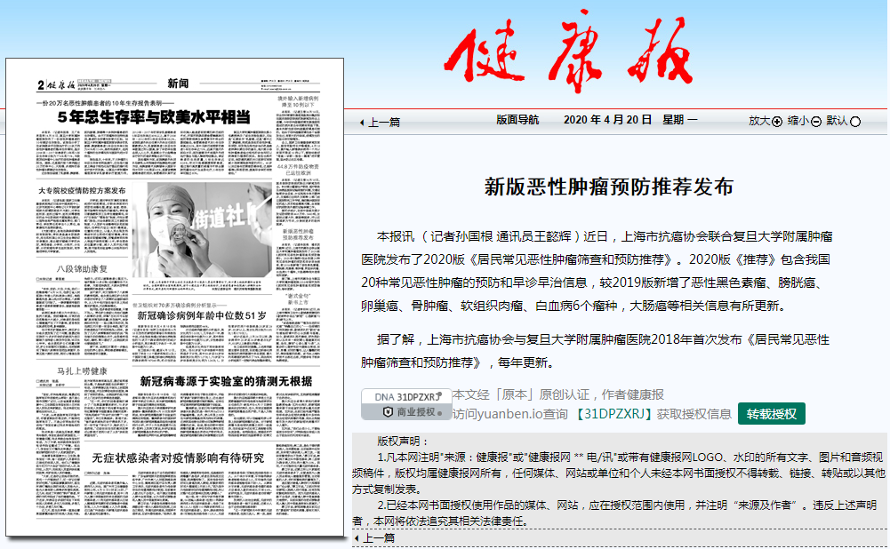 据了解,上海市抗癌协会与复旦大学附属肿瘤医院2018年首次发布《居民常见恶性肿瘤筛查和预防推荐》,每年更新。